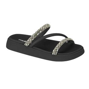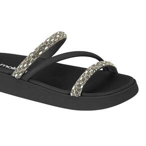 Seu cabedal é confeccionado em material sintético de alta qualidade, e conta com duas tiras finas com detalhes em STRASS, e uma tira lisa agregando muita personalidade ao modelo. As tiras são ideais para adicionar um toque de glamour a qualquer look, seja para uma ocasião especial ou para o dia a dia.