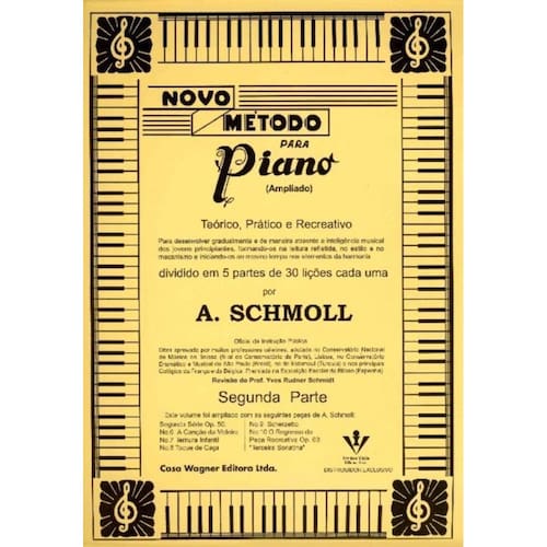 Esta segunda parte do tradicional método Schmoll para piano, constituído de 5 partes, comporta, além das 30 lições do método, as seguintes peças: A canção da moleira, Ternura infantil, Toque de caça, Scherzetto, O regresso do gondoleiro e Terceira sonatina Opus 63. Marca: Não Informado