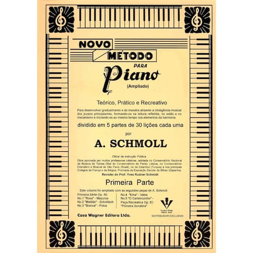 Tradicional método para piano dividido em cinco partes, tendo como proposta e desenvolvimento gradual e eficiente da inteligência musical de principiantes, formando-os na leitura refletida, no estilo e nos elementos da harmonia. Esta primeira parte comporta, além das 30 lições do método, as seguintes peças: RoSA (mazurca), Matilde (schottisch), Branca (polca), Ema (valsa), e carteirozinho e Primeira sonatina.