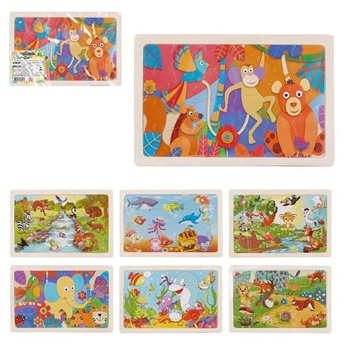 Novo Quebra-Cabeça Animais de Madeira com 7 Peças Quebra-cabeças de Madeira Sensorial para Crianças de 1 a 3 Anos - Conjunto com 7 Peças
