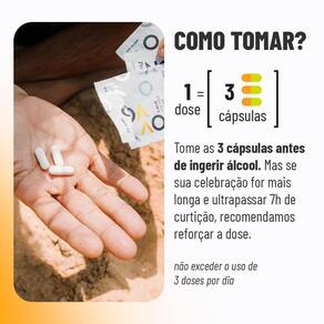 Bem simples e fácil Consuma 1 dose 3 cápsulas do Novvo Pré-Drink com o primeiro gole de celebração, e caso a celebração dure mais de 7 horas, reforce com mais uma dose.