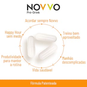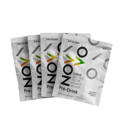 Contém 4 sachês de Novvo Pré- Drink (4 doses) O Novvo Pré-Drink é o suplemento perfeito para quem gosta de aproveitar a noite sem se preocupar com o mal-estar no dia seguinte. Com ingredientes cuidadosamente selecionados, como colina, L-cisteína, quitosana e vitaminas do complexo B, esse produto é ideal para quem busca uma balada sem preocupações. Além disso, o Novvo é livre de glúten e lactose, é de origem vegana e 100% natural, atendendo a diferentes necessidades alimentares. Com uma embalagem prática em sachê e cápsulas fáceis de consumir, o Novvo é o aliado perfeito para uma noite de diversão sem arrependimentos.