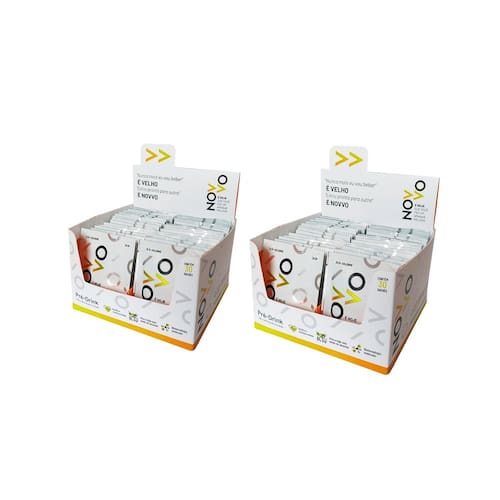 O Display da Novvo consiste em uma embalagem que contém 30 packs (30 doses) do Novvo Pré-Drink em sachês individuais. Esse anúncio contempla um Kit com 2 Displays, totalizando 60 doses do Novvo