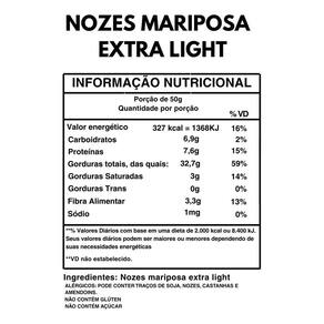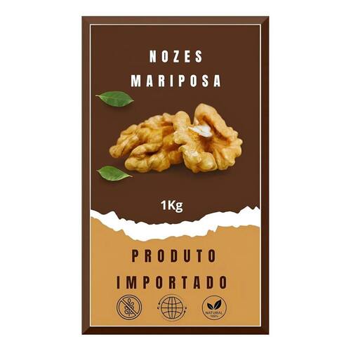 Nozes mariposa Descrição do Produto: As Nozes Mariposa são selecionadas e fracionadas em metades tipo borboleta , preservando sabor, aroma e crocância. São ricas em nutrientes e ideais para consumo direto, culinária e panificação. Características: Produto: Nozes Mariposa metade da noz Origem: Classificação: Extra Light / Light dependendo do lote Formato: Metades borboleta Cor: Marrom claro a marrom dourado Textura: Crocante, oleaginosa Sabor: Levemente adocicado e característico da noz Umidade máxima: 8% Embalagem: Pacotes a vácuo ou stand-up pouch selado Validade: 12 meses a partir da data de fabricação armazenado em local fresco e seco Benefícios nutricionais: Fonte de Ômega-3 Rica em fibras e proteínas Contém antioxidantes naturais Auxilia na saúde do coração e do cérebro Ideal para dietas balanceadas Sugestões de uso: Consumo direto como snack saudável Adição em saladas, iogurtes e cereais Uso em receitas de pães, bolos e sobremesas Marca: Não Informado Ean: 7793415563460