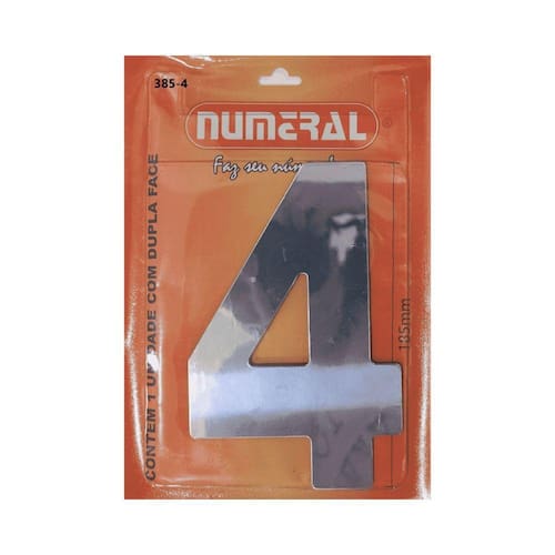 - Marca: Numeral; - Cor/Acabamento: Cromado; - Material: Alumínio Composto (acm); - Pode ser apliado em diversas superfícies, internas ou externas; - Tamanho: 185mm; - Garantia: 3 meses.