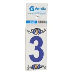 Número Residencial Cerâmico Gabriela 15cm Número N3 Material: Cerâmica Acabamento: Brilhante Altura: 15 cm Largura: 7 cm Espessura: 8 mm Peso: 20 g Garantia: 60 meses pelo fabricante A imagem do produto é ilustrativa e pode variar de tonalidade e cor de acordo com a configuração de cada monitor. Os objetos que compõem a foto ambientada não acompanham o produto. Fotos meramente ilustrativas.