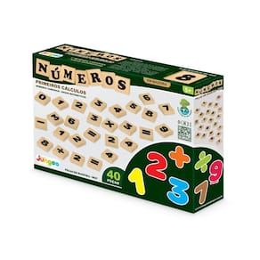 Números da Junges com 40 peças em madeira de reflorestamento MDF 6mm, tamanho de 3x3cm impressas em serigrafia, com números e sinais matemáticos tabuada completa .