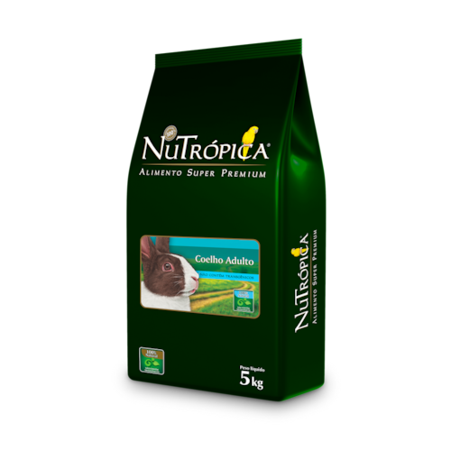 NuTrópica® Coelho Adulto é um alimento extrusado completo, cientificamente formulado e especialmente desenvolvido para coelhos a partir dos 9 meses de idade. Cada embalagem de NuTrópica® Coelho Adulto contém uma combinação exclusiva das mais nobres e saborosas matérias-primas não transgênicas, preparadas sob rigoroso controle de qualidade e utiliza as melhores técnicas em produção de alimentos. São mais de 30 ingredientes diferentes, incluindo alfafa e vários tipos de grãos integrais como aveia, ervilha, linhaça e trigo, que juntos proporcionam os níveis ideais dos nutrientes necessários para a perfeita saúde, beleza, bem-estar e vitalidade do seu coelho. Por ser um alimento não transgênico, NuTrópica® Coelho Adulto não utiliza milho nem soja em sua formulação