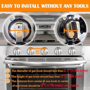 Capas de fogão YTDSUP para segurança infantil (pacote com 6), capas de segurança para maçanetas de fogão, capas de botão de forno à prova de crianças com adesivo, evite que crianças e animais de estimação fechem as maçanetas do fogão a gás, resistentes ao calor atualizadas e transparentes — meça a maçaneta do fogão antes de comprar! As tampas de botão de fogão à prova de crianças são adequadas para maçanetas de gás com diâmetro inferior a 2,7" e altura abaixo de 2". Deve haver uma distância de pelo menos 3 polegadas entre cada botão