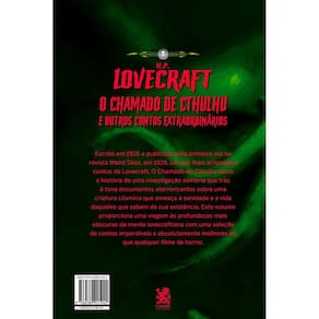 Escrito em 1926 e publicado pela primeira vez na revista Weird Tales, 1928, um dos mais aclamados contos de Lovecraft, O Chamado de Cthulhu narra a história de uma investigação sombria que traz à tona documentos aterrorizantes sobre uma criatura cósmica que ameaça a sanidade e a vida daqueles que sabem de sua existência. Este volume proporciona uma viagem às profundezas mais obscuras da mente lovecraftiana com uma seleção de contos imperdíveis e absolutamente melhores do que qualquer filme de horror.