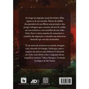 "A natureza muda bastante a cada nova estação do ano. Quando chega o inverno, é hora de alguns animais migrarem. Espécies como os bisões, animais grandes e fortes, saem em longas caminhadas, percorrendo muitos quilômetros à procura de lugares mais quentes com comida e água. Esse livro conta como Mika, uma filhote de bisão, se perde de sua manada durante a sua primeira migração. Sozinha, Mika se vê diante de desafios e dificuldades e descobre como seguir os seus instintos para poder continuar a migrar. Durante a sua jornada, a jovem bisonte conhece um bisão mais velho, Yurok. Ele a ajuda e mostra como ela pode reencontrar a sua manada: ficando atenta ao chamado dos bisões.