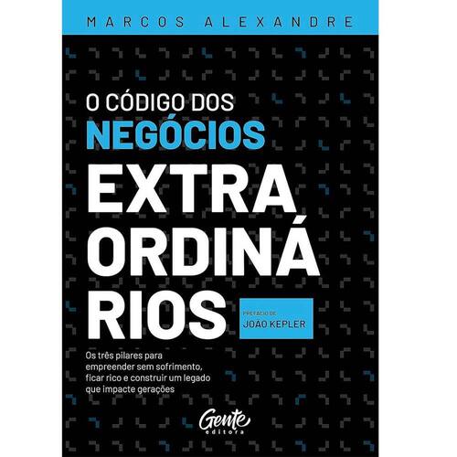 Ter uma empresa não deve ser encarado apenas como o simples ato de entregar um produto final ao consumidor. Se vamos dedicar grande parte de nossas vidas trabalhando, que seja por um propósito que traga orgulho, algo a se acreditar todos os dias. É assim que empreender se torna uma tarefa mais leve e feliz. Em O código dos negócios extraordinários, Marcos Alexandre conduz o leitor em uma jornada repleta de experiências vivenciadas em seu dia a dia, além de cases de sucesso e exercícios práticos que ajudarão o leitor não só a buscar o sucesso nos negócios, mas, acima de tudo, a felicidade.