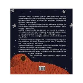 Livros para bebês se tornam cada vez mais necessários, porque a atividade da leitura prescinde o próprio letramento formal. O encontro com as histórias alimenta as percepções, estimula a sensibilidade e enriquece a socialização.Esta obra foi carinhosamente pensada com a ajuda da semiótica: bebês começam enxergando melhor o preto e o branco, depois o azul, o amarelo e o vermelho. Aqui há vários elementos que agradam aos nenéns: o contraste de cores, com um céu em azul bem escuro, quase negro, as estrelas cor de prata, uma lua amarelada e um coelho em tom parecido. Há repetições de sons em singela cadência, semelhante à das cantigas de ninar.Há formas redondas que se parecem com as dos corpos dos pequenos mamíferos, incluindo o filhote de humano. Este as detectam melhor a partir do terceiro mês de vida.Sem muitos detalhes e sem tantas linhas nas ilustrações, a proposta é oferecer um momento de carinho e aconchego.Então, um papai coelho, uma mamãe coelha, ou quem quer que esteja cuidando do pequeno láparo, poderá contar a história da amizade de Haniel com a Lua. Será um delicado encontro enquanto o sono começa a vir...