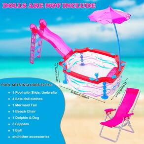 BARWA Conjunto de roupas e acessórios para bonecas, inclui conjunto de festa na piscina com escorregador e guarda-chuva, 4 conjuntos de maiô, cauda de sereia, 3 chinelos, boia de piscina, cadeira de praia, brinquedos de piscina para bonecas de 29 cm - O que você pode receber: 1 conjunto de brinquedo de piscina com escorregador e guarda-chuva, 4 conjuntos de maiô, 3 chinelos, cauda de sereia, cachorro e golfinho, boia de piscina, cadeira de praia, bebidas, fone de ouvido, chapéu de sol, bola para bonecas de 29 cm. As bonecas não estão incluídas - Presente doce – Você pode preparar essas roupas de boneca como presentes delicados para meninas e colecionadores, que podem encher seus armários. É adequado para presentes de aniversário, presentes de Natal, presentes de ano novo, presentes comemorativos, etc - Festa na piscina – Vista sua boneca em maiô e vá a uma festa na piscina. Na festa, cada boneca veste seu traje de banho, joga juntos na piscina, joga no escorregador, coloca um rabo de sereia e é uma sereia livre - Design exclusivo – Todas as roupas de boneca são cuidadosamente trabalhadas à mão. Projetado com material elástico, fácil de colocar e tirar para as mãos pequenas das crianças - Acabamento exclusivo - os designers da Barwa fizeram um trabalho maravilhoso para nossa série de acessórios para bonecas. Temos orgulho do nosso design e acabamento únicos. As roupas de boneca são feitas à mão e resistentes o suficiente. Todos os processos e materiais passam por inspeção tripla para garantir a qualidade da costura