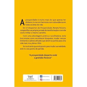 A prosperidade é muito mais do que apenas ter dinheiro: é viver em harmonia com a abundância em todas as áreas da vida. Em O Despertar da Prosperidade, Renata Peixoto compartilha sua própria jornada de transformação e convida você a trilhar o mesmo caminho. Com uma abordagem prática e acolhedora, este livro ensina como reconhecer bloqueios, mudar crenças limitantes e adotar atitudes que abrem as portas para uma vida mais rica, plena e feliz. Se você sente que está pronto para mudar sua realidade, este é o seu ponto de partida. “A prosperidade desperta onde a gratidão floresce” Marca: Não Informado
