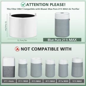 2Pacote com 2 filtros de substituição 211i Max compatíveis com purificador de ar BLUEAIR Blue Pure 211i Max, Ture H13 HEPA e filtro de substituição de carvão ativado, peça comparada #F2MAX - ?Totalmente compatível?: Este filtro de substituição 211i Max é totalmente compatível com BLUEAIR Blue Pure 211i Max Air Pu-rifier, peça de substituição #F2MAX - Atenção: este filtro é compatível apenas com um purificador de ar 211i Max, não compatível com 211+ e 211+ Auto, 411i max, 411ia, 511, 311, 121 ou outros modelos. Verifique o número do modelo antes de fazer o pedido. - ?Enchimento de alta eficiência?: o filtro HEPA limpa pelo menos 99,97% de pequenas partículas transportadas pelo ar, como fumaça até 0,1 mícron, e limpa pelos de animais de estimação e poeira. O filtro de carvão ativado limpa odores domésticos leves de fumo, animais de estimação e fumaça de cozinha - ?Pico de desempenho?: para o pico de desempenho da sua máquina, com base no uso real, o filtro deve ser substituído dentro de 9 meses, é fácil de instalar e não são necessárias ferramentas. - ?Valorizamos nossos clientes?: Se você tiver alguma dúvida sobre nosso produto, sinta-se à vontade para entrar em contato conosco e resolveremos isso dentro de 24 horas. Filtro feito de papel certificado FSC