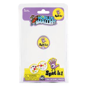 - Com seu tamanho em miniatura medindo apenas 1,5 polegadas redondas, esta versão portátil ainda mantém toda a diversão e emoção do jogo Spot It autêntico. Corra contra amigos e familiares para identificar os símbolos correspondentes em cada carta, testando sua velocidade e reflexos em uma série de rodadas rápidas.