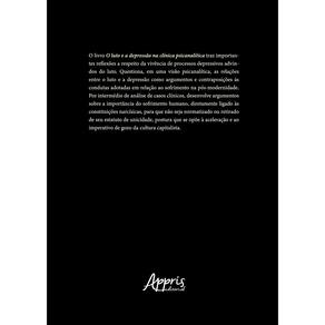 O livro O luto e a depressão na clínica psicanalítica traz importantes reflexões a respeito da vivência de processos depressivos advindos do luto. Questiona, em uma visão psicanalítica, as relações entre o luto e a depressão como argumentos e contraposições às condutas adotadas em relação ao sofrimento na pós-modernidade. Por intermédio de análise de casos clínicos, desenvolve argumentos sobre a importância do sofrimento humano, diretamente ligado às constituições narcísicas, para que não seja normatizado ou retirado de seu estatuto de unicidade, postura que se opõe à aceleração e ao imperativo de gozo da cultura capitalista.