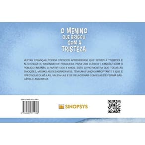 Muitas crianças podem crescer aprendendo que sentir tristeza é algo ruim ou sinônimo de fraqueza. Em sessões psicoterapêuticas, é comum pacientes adultos falarem que não tiveram a oportunidade de aprender na infância sobre suas emoções e a validá-las. Em muitos casos, são ensinados desde cedo a engolirem o choro e a não terem o direito de se sentirem tristes quando algo os afeta. Este livro é, portanto, um recurso preventivo. De forma lúdica, incentiva o diálogo e a identificação de crenças distorcidas que os pequenos podem ter sobre sentir tristeza e, a partir dela, acolherem e lidarem também com outras emoções desconfortáveis.