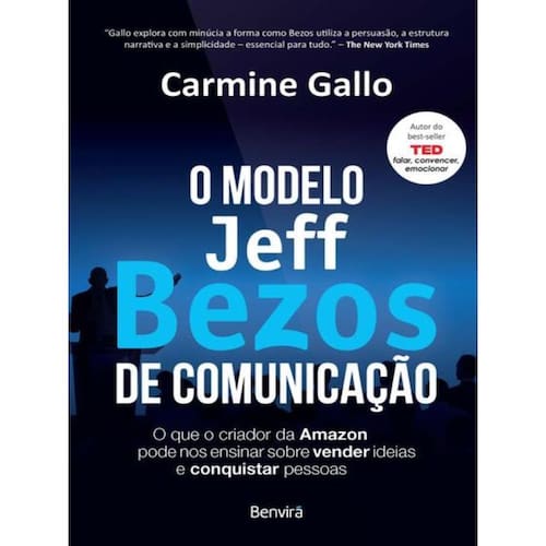 O autor do best-seller TED falar, convencer, emocionar revela os segredos de comunicação de Jeff Bezos e ensina como dominá-los. Jeff Bezos é um sonhador que transformou uma ideia ousada na empresa mais influente do mundo, revolucionando o comércio eletrônico e modificando para sempre a forma como as pessoas compram e vendem. Este livro revela as estratégias de comunicação que Bezos utilizou para alavancar o crescimento extraordinário da Amazon. Estudioso de liderança e comunicação, ele elevou a maneira como seus funcionários escrevem, colaboraram, inovam, apresentam e vendem ideias. Como um dos empresários mais inovadores e visionários da nossa época, Jeff Bezos criou um modelo de comunicação tão eficaz que passou a ser seguido por diversas empresas em todo o mundo. E agora essas ferramentas estão disponíveis para você, organizadas por Carmine Gallo, um dos maiores especialistas em comunicação da atualidade e autor de Comunicação cinco estrelas e TED falar, convencer, emocionar.