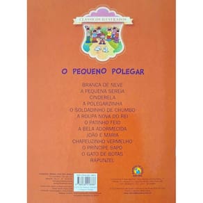 SINOPSE Este livro faz parte de uma encantadora coleção que traz os contos clássicos mais famosos do mundo todo, representados pelos divertidos personagens da Turma da Mônica. Neste volume, Cascão é o valente Pequeno Polegar, que entra no castelo do ogro emuda a vida de toda a sua família.