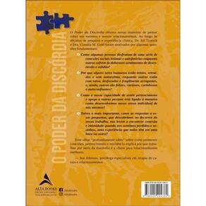 O Poder da Discórdia oferece novas maneiras de pensar sobre nós mesmos e nossos relacionamentos. Ao longo de décadas de pesquisa e experiência clínica, Dr. Ed Tronick e Dra. Claudia M. Gold foram motivados por algumas questões fundamentais: Como algumas pessoas desfrutam de uma série de conexões sociais íntimas e satisfatórias enquanto outras sofrem de dolorosos sentimentos de desconexão e solidão? Por que alguns seres humanos estão tristes, retraídos e sem autoestima, enquanto outros estão com raiva, desfocados e fragilmente arrogantes, e, ainda, outros são felizes, curiosos, carinhosos e autoconfiantes? Como a nossa capacidade de sentir pertencimento e apego a outras pessoas está ligada à maneira como desenvolvemos nosso senso individual de nós mesmos? Talvez o mais importante, como as respostas a essas perguntas, que descobrimos no decorrer do nosso trabalho, nos levem a encontrar conexão e intimidade quando nos sentimos perdidos e sozinhos, uma experiência que todos têm em uma hora ou outra? Esse olhar “profundamente sábio” sobre como promover conexões, pertencimento e resiliência explica por que trabalhar por meio da discórdia é a chave para relacionamentos melhores. — Sue Johnson, psicóloga especialista em terapia de casais e relacionamentos