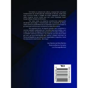 Conheça! - O 9º livro da UJUCASP, na linha dos livros que o antecederam, objetiva realçar os valores fundamentais da civilização ocidental, inspirados no cristianismo. Nesta obra, o preambulo da Constituição Federal é analisado por juristas e religiosos, eis que nele consta “promulgamos, sob a proteção de Deus, a seguinte CONSTITUIÇÃO DA REPÚBLICA FEDERATIVA DO BRASIL”. Diferencial - Os constituintes promulgaram a Constituição sob a proteção de Deus, como consta no preâmbulo da Lei Suprema, o que é comentado na primeira parte do livro por eminentes juristas brasileiros. Na segunda parte, há alguns estudos que completam o volume, também elaborados por reconhecidas autoridades na exitosa divulgação do pensamento Cristão no Brasil. Destaque - Composta por artigos de juristas e teólogos, que respondem às seguintes questões: 1. Como interpretar o Preâmbulo da Constituição, visto que sem ele não teria sido promulgada? 2. Haveria razão de ter a locução “sob a proteção de Deus” sido votada e aprovada por maioria expressiva, se fosse considerada irrelevante? 3. O § 2º do art. 226 da CF/88 faz menção ao casamento religioso distinto do casamento civil, cujos efeitos seriam os mesmos. Não estaria, tal distinção de regime jurídico com princípios próprios a demonstrar a existência de um direito religioso como ramo autônomo do direito positivo? 4. O que caracteriza a autonomia de um ramo do direito? Princípios, normas e regras com aspectos diferenciais dos outros ramos? Se assim for, não haveria no concernente à religião princípios, normas e regras diferenciais, dentro do direito positivo? Se sim, quais seriam? Sobre a UJUCASP - Em 20 de março de 2012, foi oficialmente criada a UJUCASP - União dos Juristas Católicos de São Paulo, cujo objetivo é contribuir na atividade judiciária, legislativa e administrativa, ocupando-se das questões do mundo contemporâneo, sob a ótica dos princípios da ética católica. A Associação discute e coloca em foco os valores da família, da vida, da dignidade humana e o bem comum. Sobre os Coordenadores Ives Gandra da Silva Martins é Professor Emérito das Universidades Mackenzie, UNIP, UNIFIEO, UNIFMU, do CIEE/O ESTADO DE SÃO PAULO, das Escolas de Comando e Estado-Maior do Exército - ECEME, Superior de Guerra - ESG e da Magistratura do Tribunal Regional Federal – 1ª Região; Professor Honorário das Universidades Austral (Argentina), San Martin de Porres (Peru) e Vasili Goldis (Romênia); Doutor Honoris Causa das Universidades de Craiova (Romênia) e das PUCs-Paraná e RS, e Catedrático da Universidade do Minho (Portugal); Presidente do Conselho Superior de Direito da FECOMERCIO - SP; ex-Presidente da Academia Paulista de Letras-APL e do Instituto dos Advogados de São Paulo-IASP. Membro do Conselho Consultivo da UJUCASP. Paulo de Barros Carvalho é Professor Emérito e Titular da Faculdade de Direito da USP e da Faculdade de Direito da PUC/SP; Membro Titular Academia Brasileira de Filosofia; Presidente do IBET Instituto Brasileiro de Estudos Tributários; Fundador e Editor-Chefe da Editora Noeses. Membro do Conselho Consultivo da UJUCASP. Luiz Gonzaga Bertelli é Consultor de empresas, advogado, jornalista e professor universitário. Presidente da UJUCASP e da Academia Paulista de História (APH).