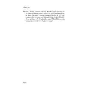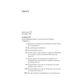 A grandeza e originalidade de O Príncipe consiste em ter alargado o campo da ciência na política, distinguindo os interesses políticos primários das classes, mas confundindo-os, ao mesmo tempo, em uma monstruosa razão de Estado pela qual o povo é apenas matéria plástica nas mãos do Príncipe. 4ª edição totalmente revista, prefaciada pelo sociólogo francês Raymond Aron, com uma cronologia da vida e obra de Maquiavel e Vocabulário dos termos-chave de Maquiavel