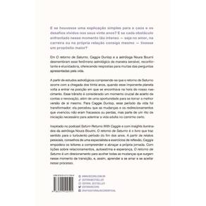Inspirado no aclamado podcast Saturn Returns with Caggie e com insights inspirados da astróloga Noura Bourini, além de um texto de orelha assinado pela renomada astróloga brasileira Claudia Lisboa, O retorno de Saturno: O despertar cósmico para conquistar a oportunidade da sua vida é o livro que traz sentido para os turbulentos vinte e poucos anos. A partir de relatos pessoais, conselhos especializados e exercícios simples, Caggie Dunlop incentiva o leitor a compreender e abraçar a própria jornada. Com lições sobre relacionamentos, autoestima e esperança, O retorno de Saturno ajuda o leitor a acolher todas as mudanças que surgem nesse momento de transição e a aprender a se amar e se aceitar nesse processo.