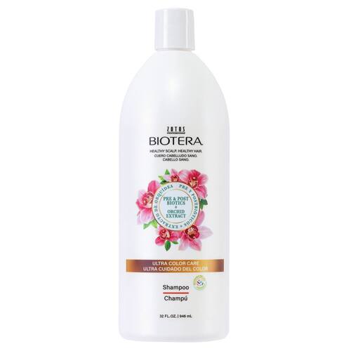 Shampoo Biotera Ultra Color Care | Prolonga cabelos vivos tratados com cores | Compatível com microbiomas | Vegano e livre de crueldade | Sem parabenos e sulfatos | Seguro para cores | 32 ml de onça — Para cabelos tratados com cores, especialmente vívidos. Um cabelo saudável começa com um couro cabeludo saudável. Nossa fórmula para o couro cabeludo, infundida com uma mistura pré e pós-biótica de iogurte de coco e ginseng, ajuda a manter uma base ideal para couro cabeludo e cabelos saudáveis.