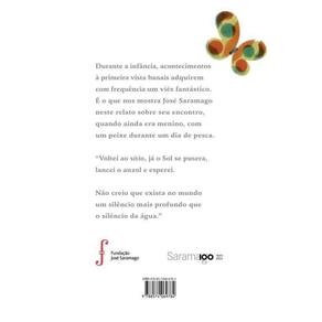Um retorno — cheio de fantasia e encanto — a um episódio da infância de José Saramago. Durante a infância, acontecimentos à primeira vista parecem banais, mas com frequência adquirem um viés fantástico e cheio de encantamento — e a lembrança desses eventos não se perde mesmo na vida adulta. É o que nos mostra José Saramago nesta nova edição de O silêncio da água , que agora vem com as belas ilustrações da artista espanhola Yolanda Mosquera. Aqui, encontramos o autor ainda menino, durante um dia de pesca, quando um enorme peixe fisga o seu anzol e, assim, começa uma grande aventura. “Voltei ao sítio, já o Sol se pusera, lancei o anzol e esperei. Não creio que exista no mundo um silêncio mais profundo que o silêncio da água.” Indicado para leitores a partir de 7 anos. Marca: Não Informado