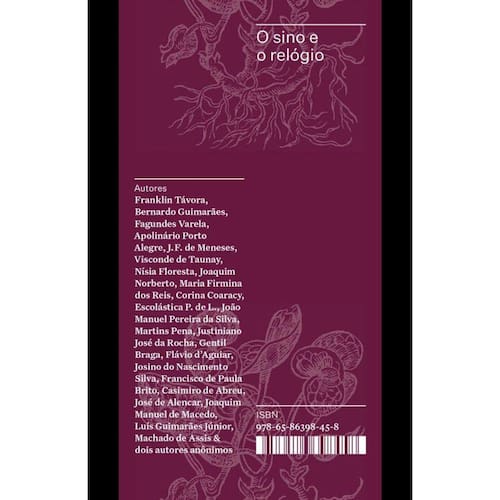 Coletânea organizada por professores da USP traz material raro e revela como o gênero da narrativa curta se consolidou nas letras nacionais. O sino e o relógio é a primeira antologia, em muitas décadas, de contos românticos brasileiros. Com ênfase e m material raro, ela reúne 25 narrativas publicadas entre 1836 e 1879 — a maioria inédita em livro. Os organizadores, Hélio de Seixas Guimarães e Vagner Camilo, dedicaram-se durante dez anos a uma coleta minuciosa que levou à inédita abrangência da s eleção. Entre as preciosidades estão histórias escritas por mulheres, algumas relativamente conhecidas, como Nísia Floresta e Maria Firmina dos Reis, outras ainda obscuras, como Escolástica P. de L. e Corina Coaracy. Dividida em quatro partes, a cole tânea revela como o Romantismo, tal como praticado no Brasil, abrangeu mais temas do que os tradicionalmente reconhecidos, com destaque para os contos fantásticos e as crônicas de costumes. Marca: CARAMBAIA GERAL