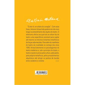 “O ator é um atleta do coração”. Com essa frase, Antonin Artaud não poderia ter ido mais longe no entendimento dos duplos do teatro. O atletismo afetivo ao qual ele se refere faz do teatro uma experiência sensível para captar até mesmo os mínimos instantes metafísicos de forças adormecidas. Para além do manifesto do teatro da crueldade no começo dos anos 1930, Artaud desmonta os psicologismos do teatro moderno e, sob o princípio do duplo, o teatro é posto à prova pela cultura, pela peste, pela própria metafísica, pelos procedimentos alquímicos até atingir os pontos de tensão entre ocidente e oriente. Esse teatro tem uma linguagem concreta: busca-se uma dignidade típica de exorcismos particulares. Eis uma espécie de possessão pelas formas de sentidos e de significações. Muito atento à linguagem, Artaud buscou extrair dela uma capacidade primeira de feitiço, podendo ser um detalhe ou uma articulação de detalhes. Diante da cena e em cena, emerge um teatro de transes, cujo repertório totêmico e hieroglífico põe em circulação a palavra colada ao seu sopro, ao gesto e à expressão, ou a combinação deles. O teatro e seu duplo contém uma consciência singular que um encantamento pode ser elaborado. Para fabricá-lo, Artaud ressalta vibrações menores: entonações, linguagem visual de objetos que, junto aos gestos, prolonga seus sentidos fisionômicos aos signos. Artaud abre o terreno dos limiares, situando o teatro numa encruzilhada entre cores, luz, instrumentos musicais, figurino, palco ou local de encenação. Eis alguns dos pontos cardinais onde o corpo permanece como um espaço de invenção. No Brasil, pode-se imaginar a beleza inquietante deste livro aberta às manifestações afro e ameríndias onde as sombras ancestrais encontrariam uma força extática e performática. Nesse sentido, os objetos encontram uma potência sonora expressiva, propiciando vasos comunicantes entre forças adormecidas. Daí a necessidade do seu grito. Uma vez posta a crítica do teatro bem falado, que não sabe gritar ou orientar-se por gestos, Artaud faz com que a força vital dos afetos siga acionando o duplo do teatro. O humano, para além e aquém da sua própria espécie, assume uma dimensão espectral da sensibilidade. Extremamente atento, rigoroso, Artaud capta as vibrações não-ocidentais para alterar os rumos do teatro em pensamento e em ato. Ele implode a retórica bem comportada para fazer com que o teatro respire, pulse no seu atletismo afetivo que nos mantém enfeitiçadas, enfeitiçados. Eduardo Jorge de Oliveira