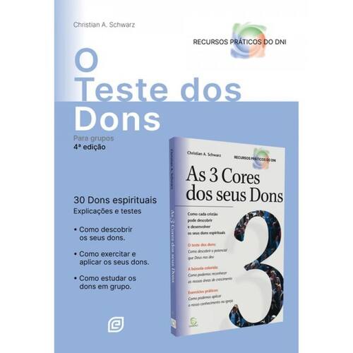 O Teste dos Dons, lançado originalmente em 1998, alcançou grande número de cristãos que o utilizaram para descobrir e utilizar seus dons espirituais adequadamente. Esta nova edição sintetiza os livros O Teste dos Dons e As 3 Cores dos seus Dons. Deve ser utilizada em grupos para que, em conjunto, possam descobrir e aplicar seus dons espirituais em favor do Reino de Deus. Ele apresenta 30 Dons espirituais, conforme a Bíblia, e traz explicações e testes: - Como descobrir os seus dons; - Como exercitar e aplicar os seus dons; - Como estudar os dons em grupo. Importante: por serem para grupos estes livros são vendidos somente em pacotes com 10 unidades. Marca: ESPERANÇA *