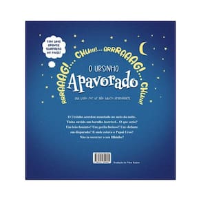 Neste livro pop-up, um adorável ursinho acorda no meio da noite, assustado por um barulho inesperado. Com ilustrações coloridas e dobraduras encantadoras que saltam a cada página, essa emocionante história nos mostra como o medo pode nos surpreender. Prraaag!... Chum!... É com esse som aterrorizante que o Ursinho é acordado à noite no meio da escuridão. O que poderia fazer um barulho como esse? Apavorado, ele chama pelo Papai Urso… Mas ele não aparece! Por que não vem socorrer o seu filhinho? Nesta cativante história, mergulhamos na imaginação do Ursinho enquanto ele tenta desvendar a origem do som assustador. Será um leão faminto? Um gorila furioso? Ou talvez um elefante em disparada? Cada uma dessas possibilidades ganha vida em ilustrações surpreendentes que saltam das páginas para nos assustar, criando uma experiência emocionante e cheia de mistério! Da mesma dupla de autor e ilustrador, a Companhia das Letrinhas já publicou O sapo bocarrão , O soluço do Lúcio , A girafa que cocoricava , Essa não! , O porco narigudo , Drácula e O pinguim preocupado . Os três últimos receberam o selo Altamente Recomendável da FNLIJ. Indicado para leitores a partir de 0 ano.