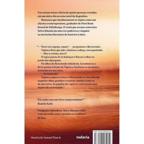 Obra de estreia saudada desde seu aparecimento como um marco da nova literatura latino-americana, O vento que arrasa já traz as maiores qualidades de Selva Almada, que seriam reconhecidas por meio de livros como Garotas mortas e Não é um rio: a prosa límpida, cortante e poética, junto com um olhar filosófico sobre a vida das pessoas comuns e a sabedoria rara de perceber que mesmo o silêncio carrega uma miríade de significados. Uma obra triunfal.