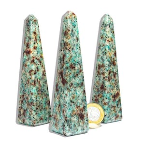 A Amazonita Paraíba é uma verdadeira obra-prima da Terra. Sua cor verde-azul intensa e brilhante é uma maravilha da natureza, e seus padrões únicos a tornam uma peça de destaque em qualquer ambiente. Cada obelisco é uma manifestação da beleza natural em sua forma mais pura, uma verdadeira joia da Terra.