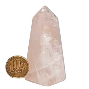 Nome da Pedra: Quartzo Rosa Cor: Rosa suave, característica do mineral natural. Formato: Obelisco (Torre Piramidal), um design que potencializa a energia da pedra. Claridade: Opaco, sem transparência, com uma textura que valoriza sua autenticidade. Dimensões: 50 a 70mm Peso: 50 a 100g