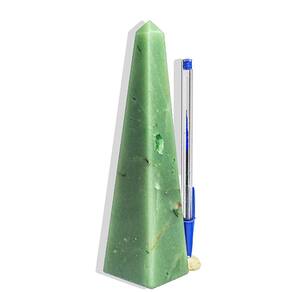 O Quartzo Verde é uma jóia que se destaca por sua coloração suave, que varia de tons levemente translúcidos a matizes profundos de verde. Quando esculpido em forma de obelisco, revela sua beleza natural em todo o seu esplendor.