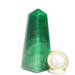 O Quartzo Verde é uma jóia que se destaca por sua coloração suave, que varia de tons levemente translúcidos a matizes profundos de verde. Quando esculpido em forma de obelisco, revela sua beleza natural em todo o seu esplendor.