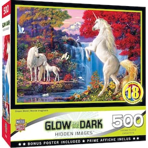 - Acabamento fosco – Nosso acabamento fosco ajuda a reduzir o brilho para uma melhor experiência de quebra-cabeça. Aqui está o que aparece nesta coleção Hidden Image Glow - Imagens ocultas de unicórnios.
