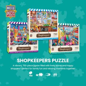 - Corte aleatório – Todos os quebra-cabeças MasterPieces têm diferentes formas para criar uma variedade com peças apertadas e espessas. Assegurando uma variedade de desafios com cada quebra-cabeça! A maneira perfeita de manter a noite de jogo divertida.