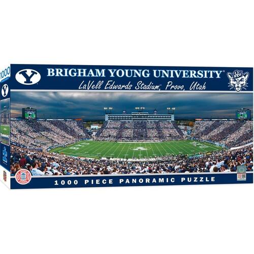 MasterPieces NCAA Brigham Young BYU Cougars, quebra-cabeça panorâmico de estádio, LaVell Edwards, 1000 peças - Licenciado oficialmente: nossos quebra-cabeças panorâmicos NCAA são oficialmente licenciados pelas ligas em que seus times favoritos jogam; divertidos para dias de jogos e não autorização; Masterpieces é uma empresa americana de quebra-cabeças e jogos - FORMAS ÚNICAS: O quebra-cabeça possui 1.000 peças em uma variedade de cortes, garantindo um desafio; peças grossas interligadas seguram firmemente; acabamento fosco antirreflexo reduz o cansaço visual - Responsável pelo meio ambiente: nossos quebra-cabeças são feitos de material 100% reciclado e tintas à base de soja não tóxicas - Desafio: Nossos quebra-cabeças são projetados para serem divertidos e mentalmente estimulantes; ajudam no relaxamento; aumentam as habilidades de resolução de problemas; ótima atividade social com a família e amigos - Entretenimento para todos: a coleção MasterPieces oferece a maneira perfeita de manter a diversão noturna do jogo; selecione entre quebra-cabeças para adultos, idosos e crianças; baralhos exclusivos de baralho, jogos de tabuleiro, dominó, kits de artesanato e muito mais