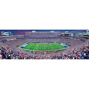 Quebra-cabeça esportivo de 1000 peças MasterPieces - NFL Buffalo Bills Center View Panoramic - 13"x39" - Prêmio de Excelência Dr. Toy - 100 melhores brinquedos - Produto oficialmente licenciado pela NFL - 1000 peças em um quebra-cabeça acabado de 13 polegadas por 39 polegadas. Adequado para emoldurar quando montado - O tabuleiro de quebra-cabeça espesso reciclado e as peças cortadas aleatoriamente garantem um encaixe perfeito e criam uma experiência divertida - O quebra-cabeça mede 13 x 39 polegadas quando montado - O quebra-cabeça é adequado para emoldurar quando montado - 1000 peças entrelaçadas - Horas de diversão para maiores de 13 anos