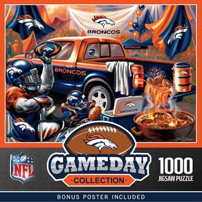 MasterPieces - Quebra-cabeça de 1000 peças, NFL Denver Broncos, divertido para adultos e família, acabamento sem brilho, 49 cm x 68 cm - Licenciado oficialmente: nossos quebra-cabeças NFL são oficialmente licenciados pelas ligas em que seus times favoritos jogam; divertidos para dias de jogos e não autorização; o nível de dificuldade é apropriado para um fã adulto desfrutar; para crianças menores de 14 anos, esses quebra-cabeças são melhor feitos em família - FORMAS ÚNICAS: O quebra-cabeça possui 1.000 peças em uma variedade de cortes, garantindo um desafio; peças grossas interligadas seguram firmemente; acabamento fosco antirreflexo reduz o cansaço visual - Responsável pelo meio ambiente: nossos quebra-cabeças são feitos de material 100% reciclado e tintas à base de soja não tóxicas - Entretenimento para todos: a coleção MasterPieces oferece a maneira perfeita de manter a diversão noturna do jogo; selecione entre quebra-cabeças para adultos, idosos e crianças; baralhos exclusivos de baralho, jogos de tabuleiro, dominó, kits de artesanato e muito mais