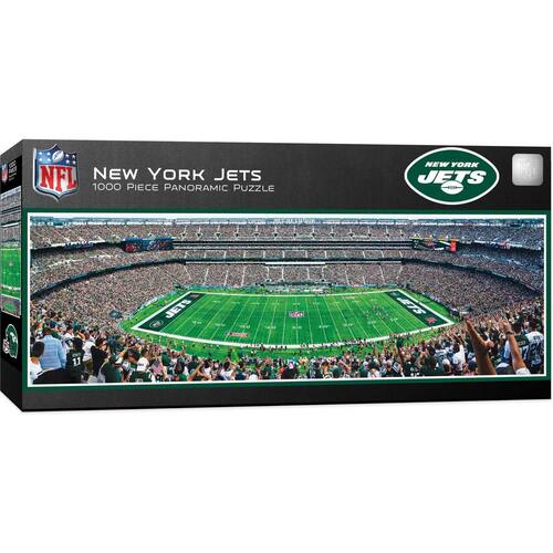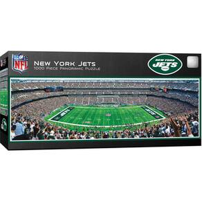 Masterpieces Quebra-cabeça esportivo de 1000 peças - NFL New York Jets vista panorâmica central - 33 cm x 99 cm - Dr. Toy Award of Excellence - 100 melhores brinquedos - Produto oficialmente licenciado pela NFL - 1000 peças em quebra-cabeça acabado de 33 cm por 99 cm. Adequado para emoldurar quando montado - O tabuleiro de quebra-cabeça espesso reciclado e as peças de corte aleatório garantem um ajuste justo e criam uma experiência divertida