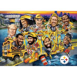 MasterPieces Quebra-cabeça esportivo de 500 peças para adultos - NFL Pittsburgh Steelers All-Time Greats - 38 x 53 cm - Apresenta alguns dos maiores jogadores da NFL que já usaram um uniforme do Dallas Cowboys - As caricaturas facilmente reconhecíveis e divertidas são mostradas em um cenário específico para o nome do time, cidade ou história - Diversão para todas as idades - Cores e gráficos ousados - Feito de material reciclado