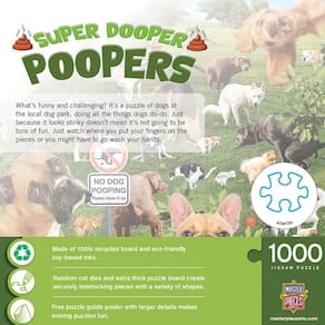 MasterPieces Quebra-cabeça de 1000 peças para adultos e família - Super Dooper Poopers - 49 x 68 cm - Embarque em uma viagem encantadora montando as cenas caprichosas de cães em situações divertidas no parque local para cães. - Mergulhe no artesanato excepcional de nossos quebra-cabeças, prometendo uma experiência envolvente e inesquecível. - Aproveite a estabilidade e durabilidade adicionais de nossos quebra-cabeças, graças às suas peças exclusivas cortadas com um ajuste interligado. - Faça uma escolha ecológica com quebra-cabeças feitos de papelão 100% reciclado e impressos com tinta à base de soja não tóxica. - Melhore seu foco e reduza o cansaço visual com o acabamento fosco, garantindo uma sessão de quebra-cabeças sem brilho para todas as idades.