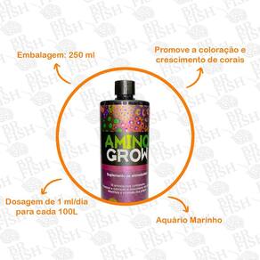 OT AminoGrow da OceanTech é uma mistura concentrada de 18 aminoácidos essenciais para aquários marinhos. Os aminoácidos são essenciais para a produção de enzimas, crescimento de tecidos e formação de esqueleto. Os corais também precisam de aminoácidos para construir proteínas para o crescimento dos tecidos e também para o processo de calcificação. Para garantir o crescimento saudável dos corais, mantenha um plano de dosagem regular. Variações acima e abaixo da dosagem recomendada podem ser feitas dependendo das condições do seu aquário e quantidade de corais. Altos níveis de aminoácidos podem ser prontamente utilizados pelos corais. Não recomendamos a dosagem em níveis altos se houver níveis elevados de fosfato e nitrato em seu aquário. Recomendamos começar a dosagem com 1 ml/dia para cada 100L de água do aquário e analise os resultados por um período mínimo de 15 dias. Caso deseje aumentar a dosagem faça isso lentamente. Não recomendamos usar mais do que 3ml para cada 100 litros/dia. Composição: L-treonina, L-cisteína, L-serina, L-glicina, L-prolina, L-histidina, L-triptofano, L-arginina, L-lisina, L-tirosina, ácido L-aspártico, ácido L-glutâmico, L-valina, L-leucina, L-metionina, L-fenilalanina, L-alanina e Taurina. Marca: Não Informado