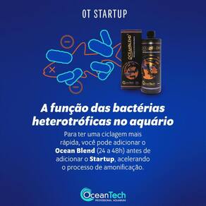 A alta taxa de reprodução das bactérias presentes no OT Start-up e seu elevado metabolismo, permitem a imediata introdução de animais ao aquário desde o primeiro dia. OT Start-up também pode ser usado após trocas parciais de água, antes ou depois da introdução de novos animais ou sempre após algum tratamento medicamentoso para reforçar a filtragem biológica.